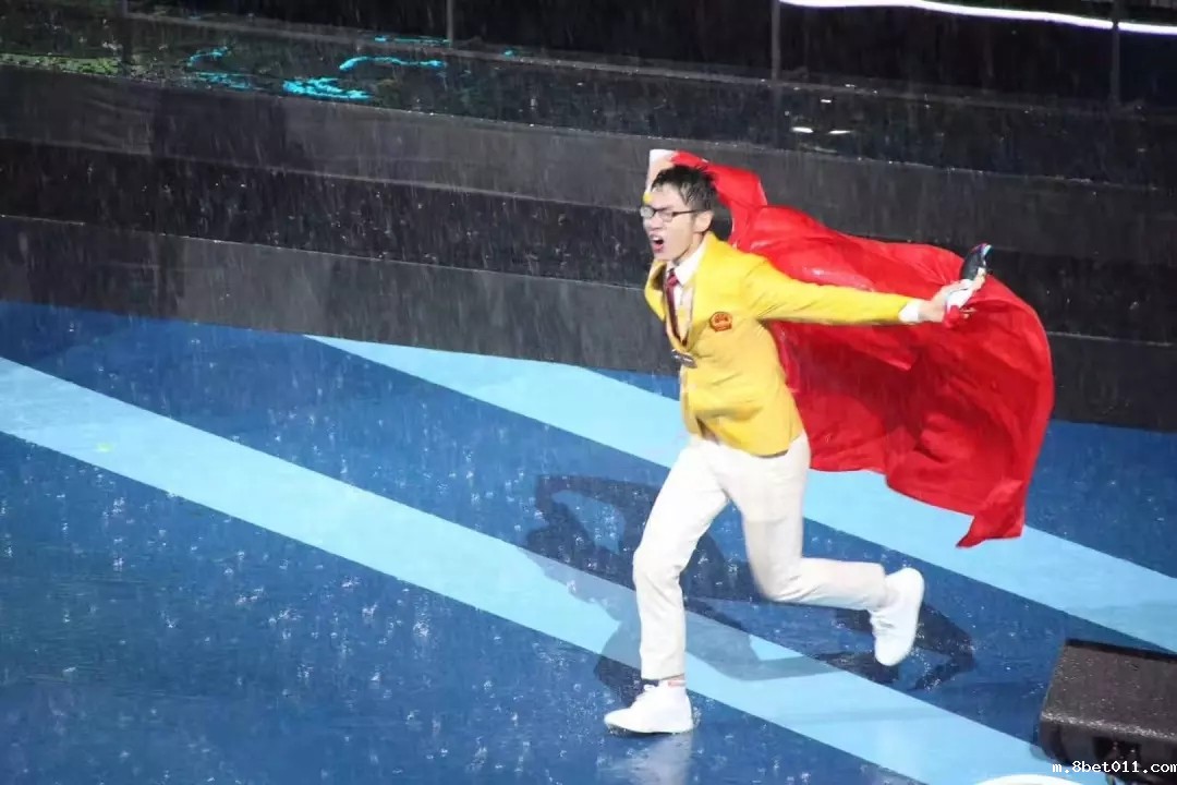 8月27日晚,在喀山闭幕式现场,胡耿军和郑棋元身披鲜艳的五星红旗,站上领奖台的那一刻,看到台下一片中国红,两人激动不已。
