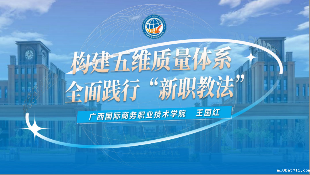 广西国际商务职业技术学院校长王国红作报告,他表示,为进一步推动我国职业教育标准体系国际输出,广西国际商务职业技术学院在长期理论与实践探索基础上,创造性地提出和完善了SPADE五维质量保证体系,并从理论、制度、体系、机制、投入和法律保障等六个维度,介绍了商科院校国际化进程方面进行的深入探索和全面布局。